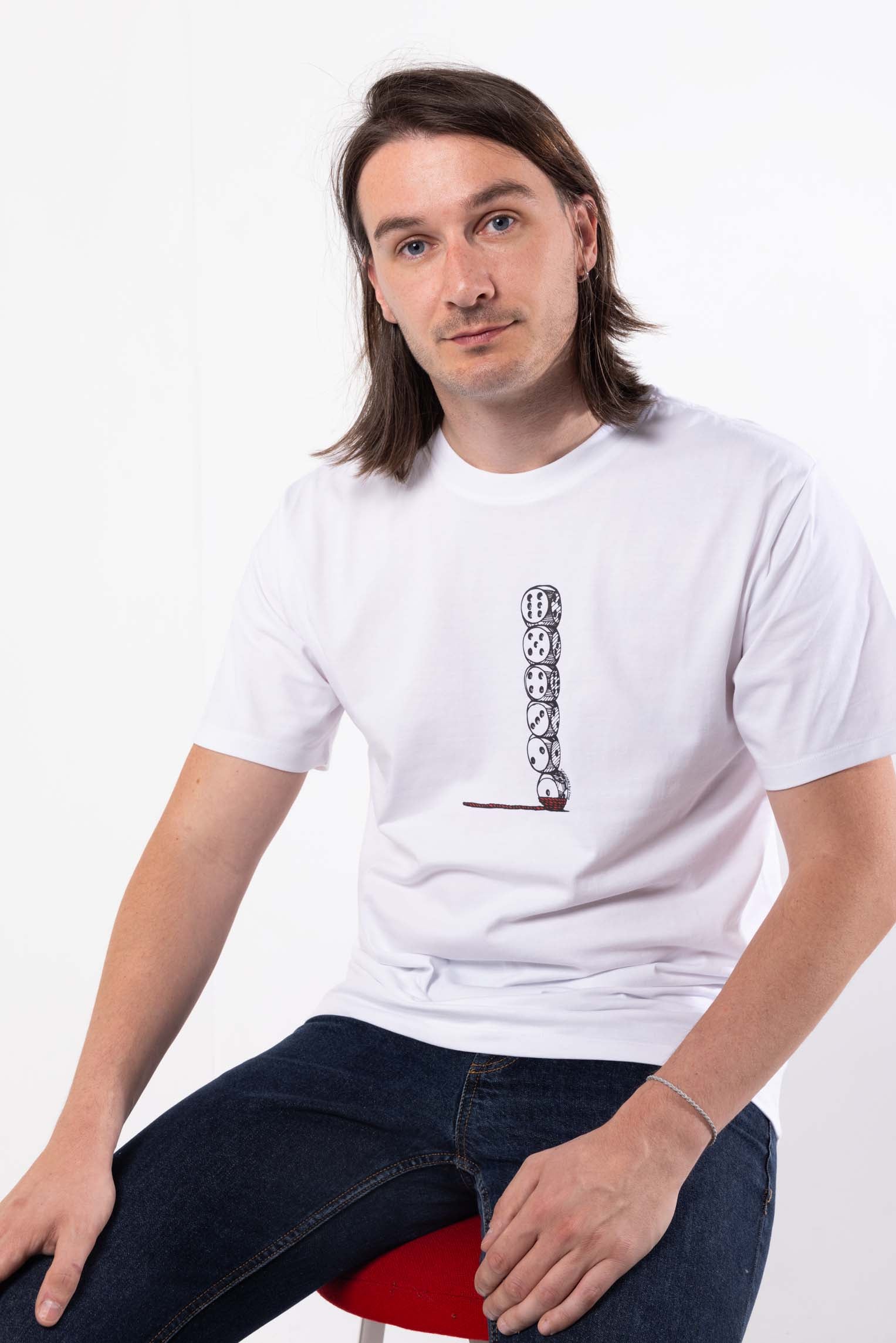 Le dé à jouer représente le destin, avec ses six faces symbolisant six destins divers. Les six dés ne représentent pas seulement le destin individuel, mais également une destinée collective. Vous êtes en leur sein, peut-être en bas, au milieu, ou au sommet – lequel de ces dés êtes-vous ? Les destinées entre elles peuvent être manipulées par autrui, avez-vous le pouvoir de décision ?