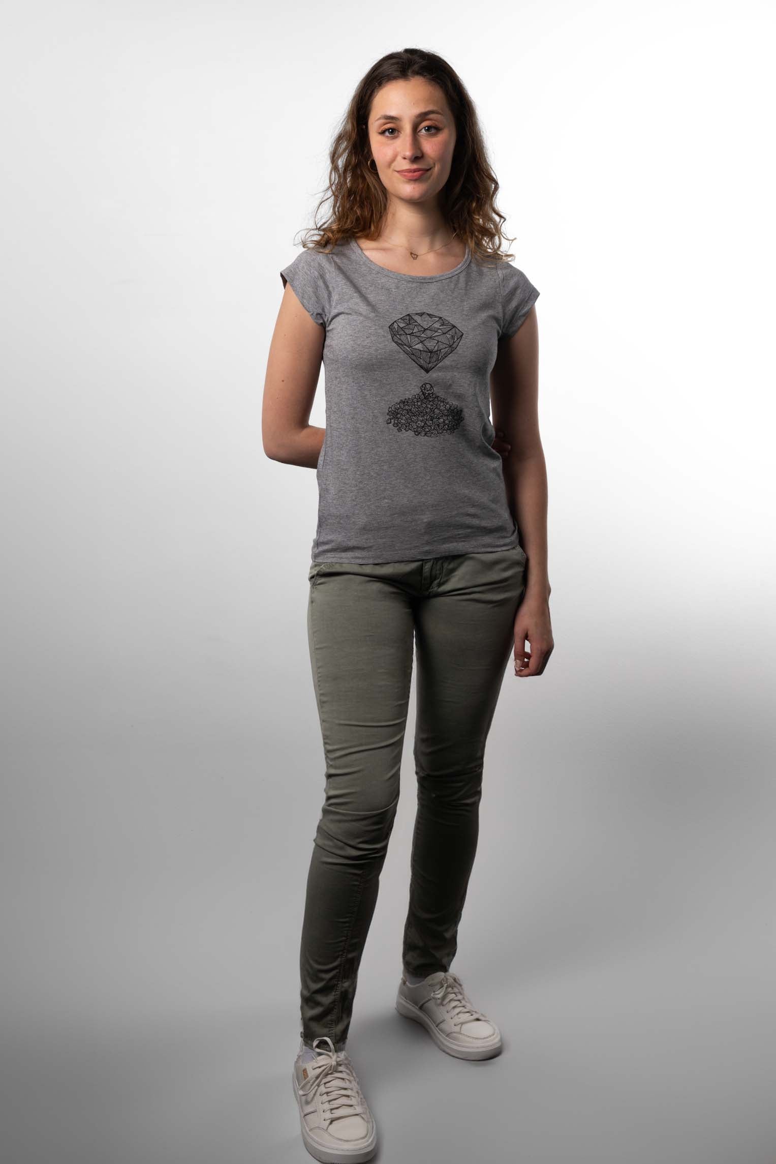 "Diamantier" est un mot créé à partir de "diamant" et "sablier". La valeur est-elle fixe ? La mobilité sociale est-elle possible ? Ce top facile à associer se porte seul ou sous un cardigan ou une veste de la saison.