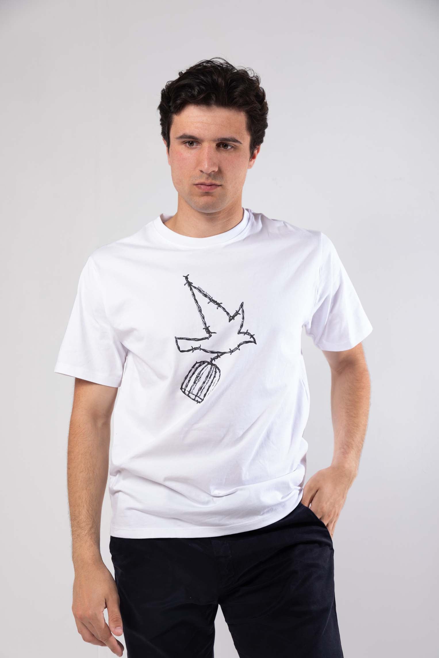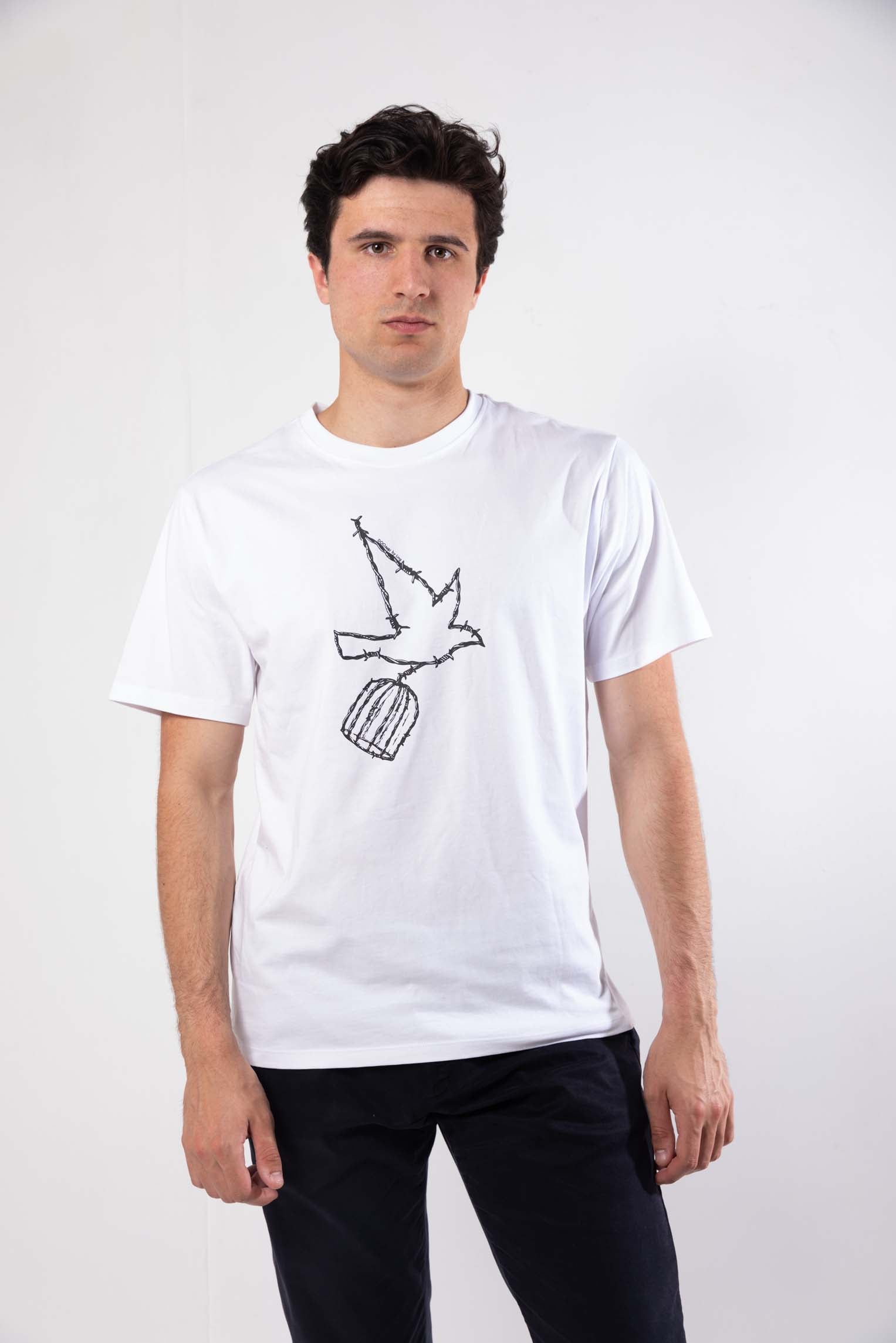 Notre dernière nouveauté présente un motif saisissant d'une colombe volante, qui s'entrelace de manière intrigante avec une cage. Ce design invite à la contemplation des complexités de la vie et de l'expression personnelle.