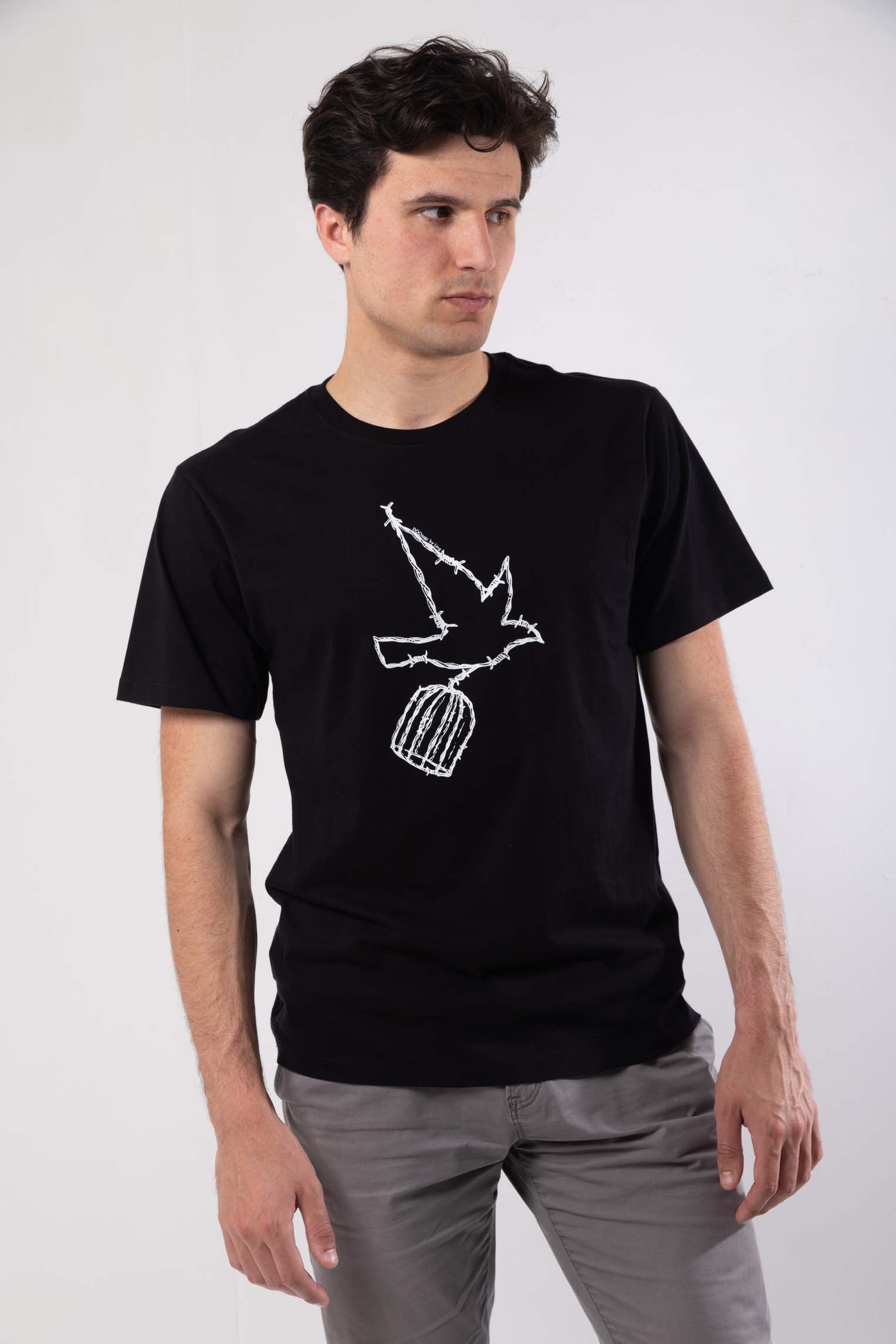 Notre dernière nouveauté présente un motif saisissant d'une colombe volante, qui s'entrelace de manière intrigante avec une cage. Ce design invite à la contemplation des complexités de la vie et de l'expression personnelle.